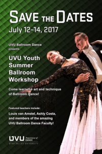 You can now register for the UVU Summer Youth Ballroom Workshop July 12-14, 2017. Registration is online here.