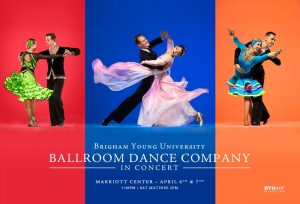 BYU Ballroom Dance Company in Concert will be on April 6 and 7, 2018 at the Marriott Center. Showtimes are at 7:30 pm Friday and Saturday, with a matinee Saturday at 2:00 pm.