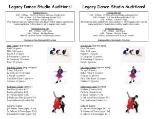 Please see the PDF below for information about the auditions for Legacy Dance Studio on May 21, 2019.