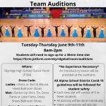 Skyridge Ballroom will have auditions June 9 – 11, 2020. More information is available at this form.