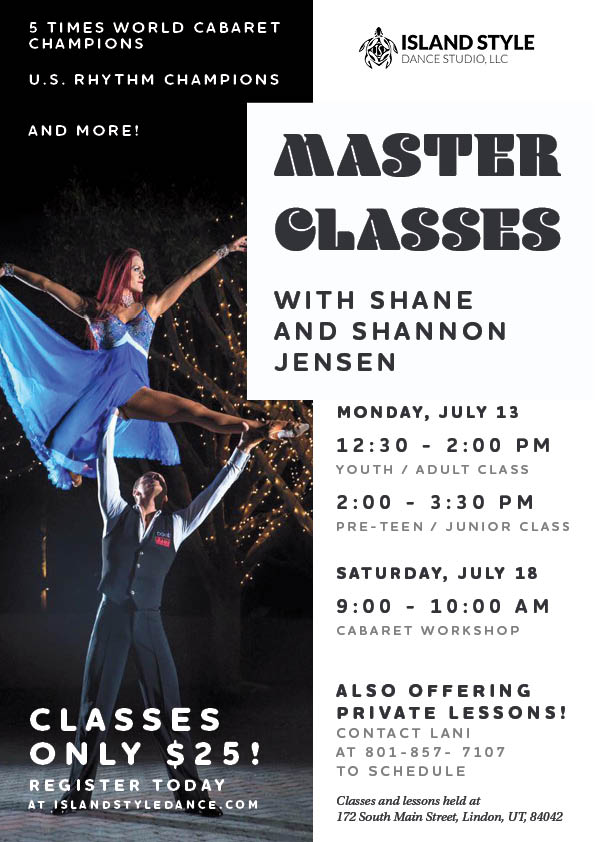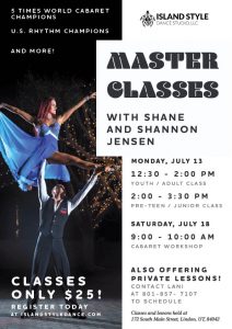 Please see the information below about master classes with Shane and Shannon Jensen, hosted by Island Style Dance Studio: