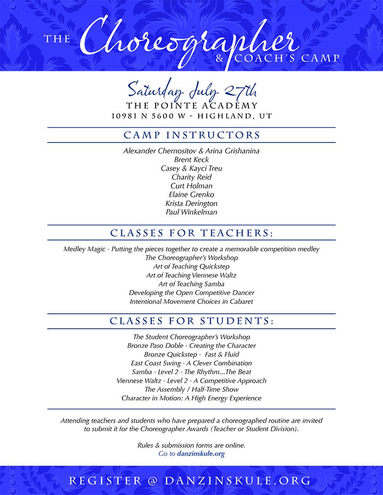 Registration is available for the 2024 Choreographer and Coach’s Camp held at The Pointe Academy in Highland on July 27, 2024.