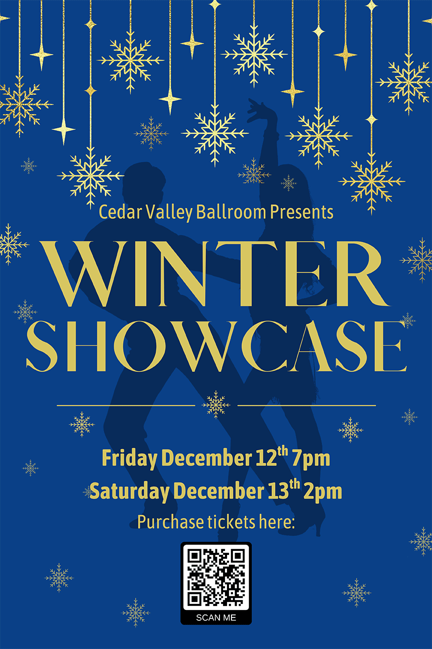 Cedar Valley Ballroom will present its Winter Showcase on December 12 & 13, 2025. See more information below: